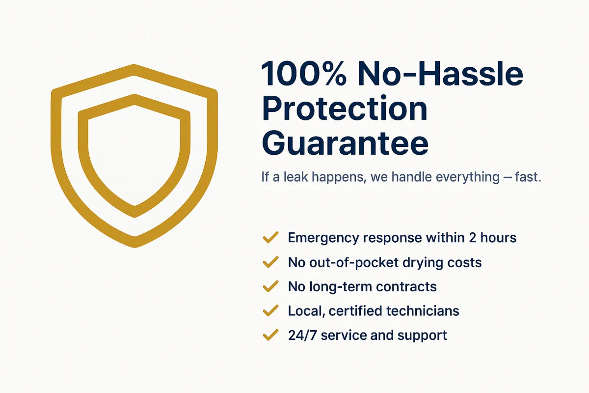 We cover the full dry-out—up to $1,500 per incident—with $0 out of pocket to you.